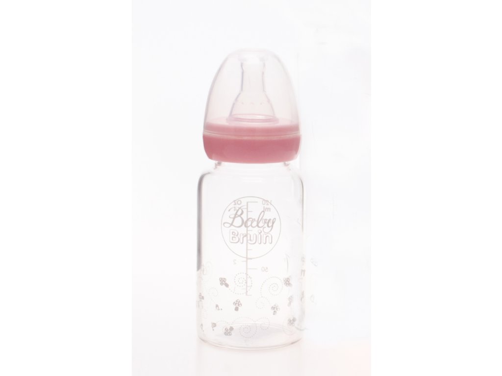 Baby Bruin Dojčenská fľaša sklo ružová 120 ml 0m+
