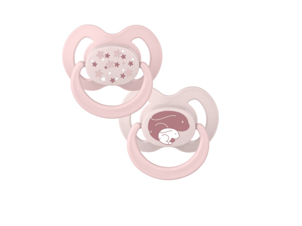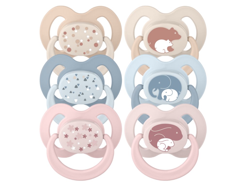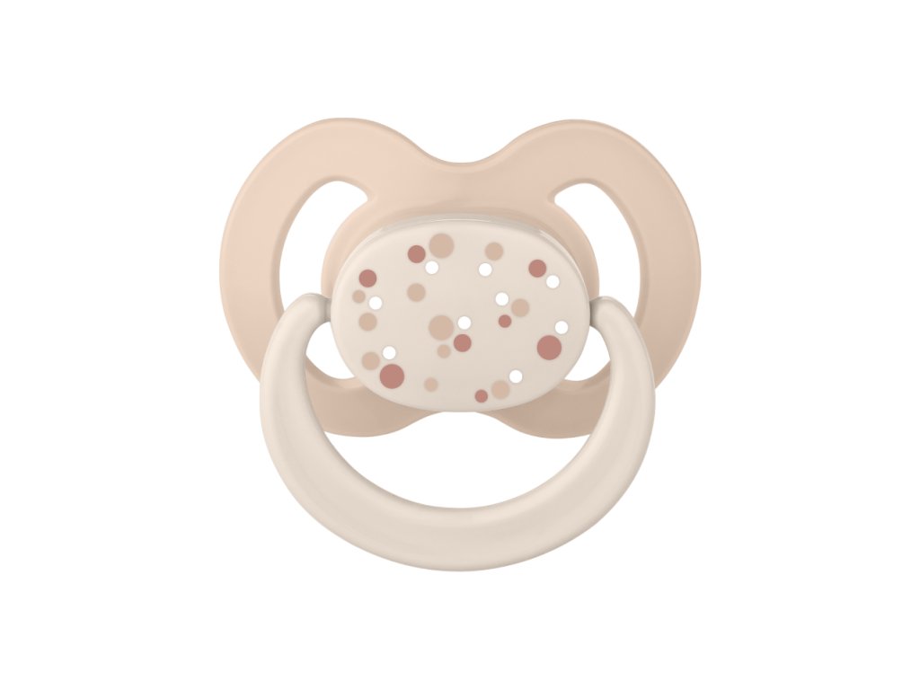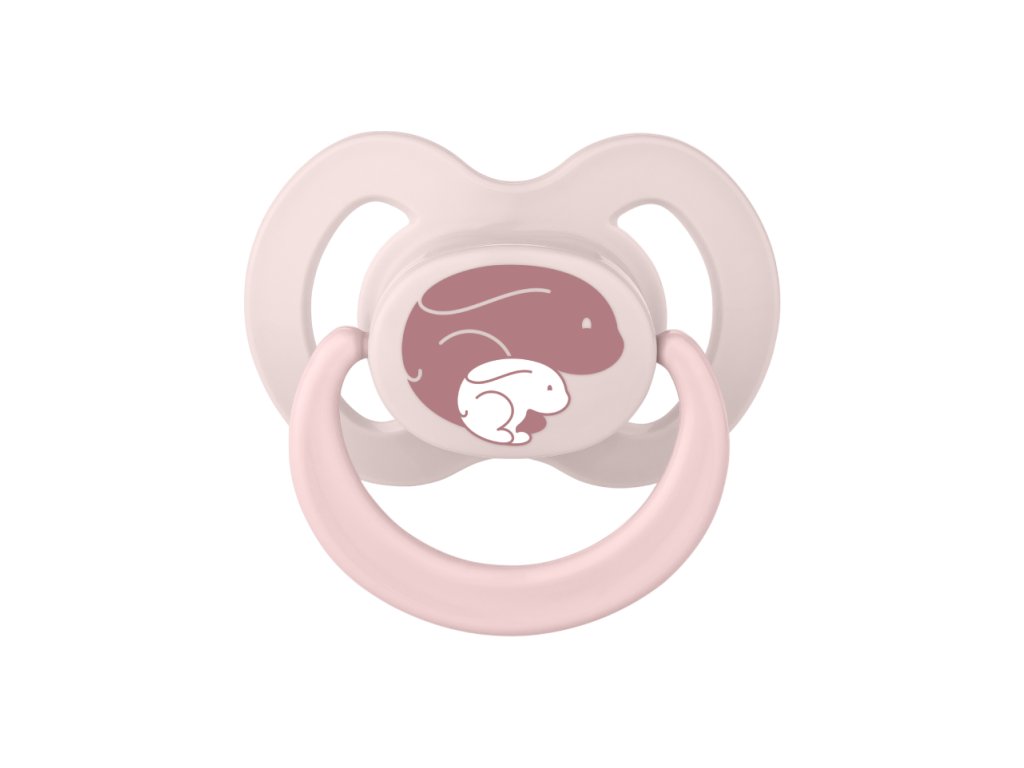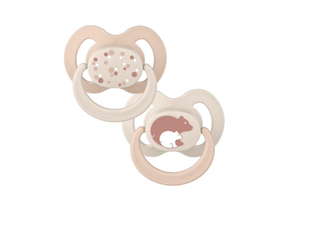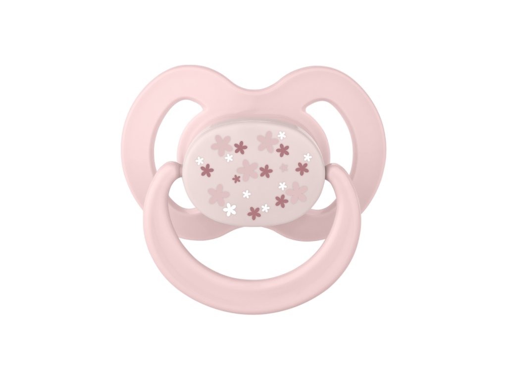 Utišujúci cumlík šetrný k čeľusti podporuje prirodzený vývoj mliečnych zubov vďaka anatomicky tvarovanému cumlíku.