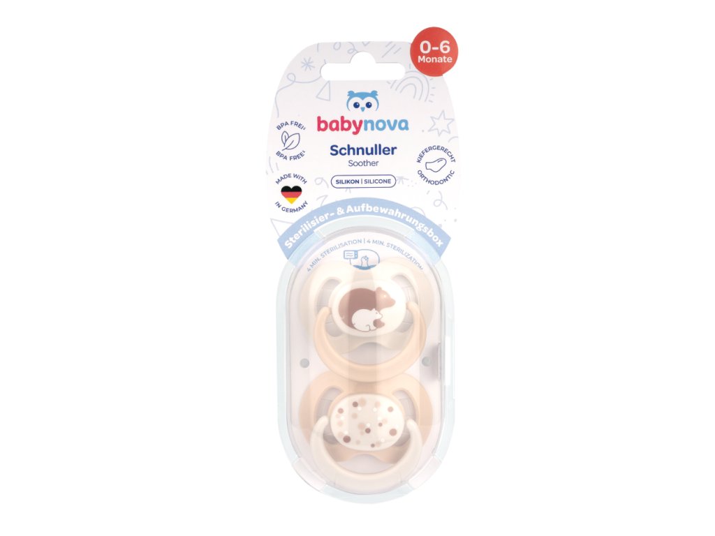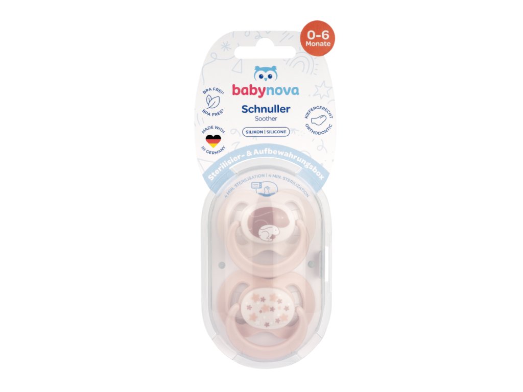 Baby Nova Anatomický utišujúci cumlík s krúžkom silikón 0-6m 2 ks sterilizačný box