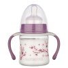 Dojčenská fľaša s rukoväťami Baby Nova s potlačou čerešňového kvetu alebo púpavy s objemom 150 ml a širokým hrdlom.