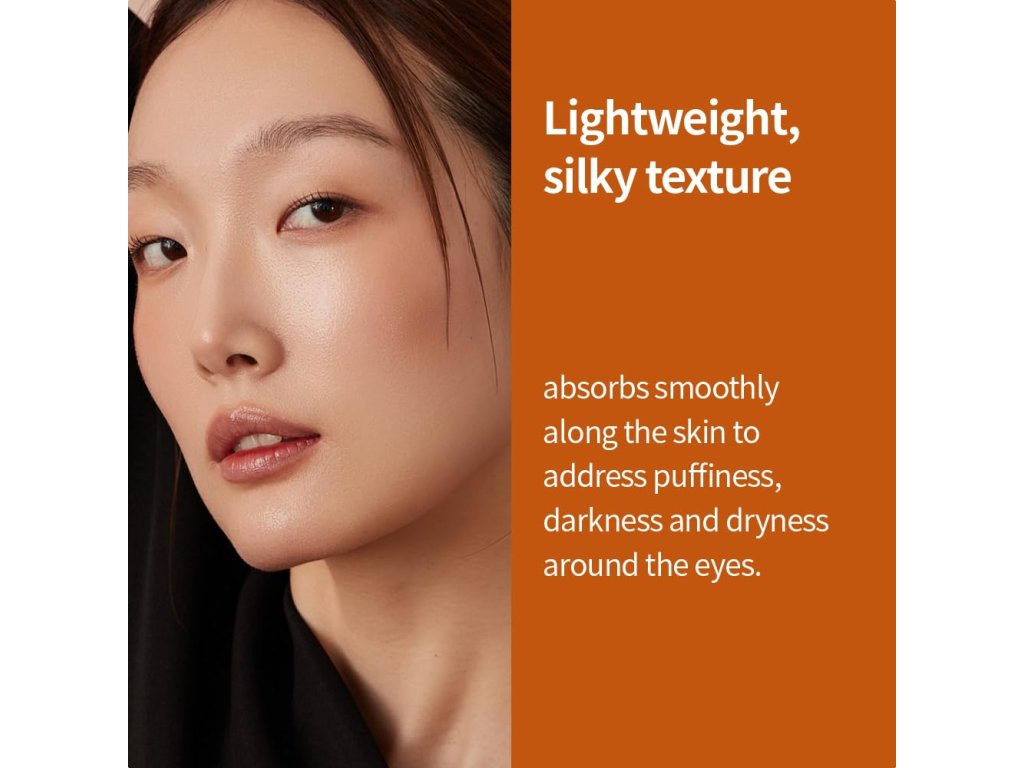 Sérum má ľahkú, rýchlo sa vstrebávajúcu textúru, ktorá zanecháva očné okolie svieže, pružné a hodvábne hladké.