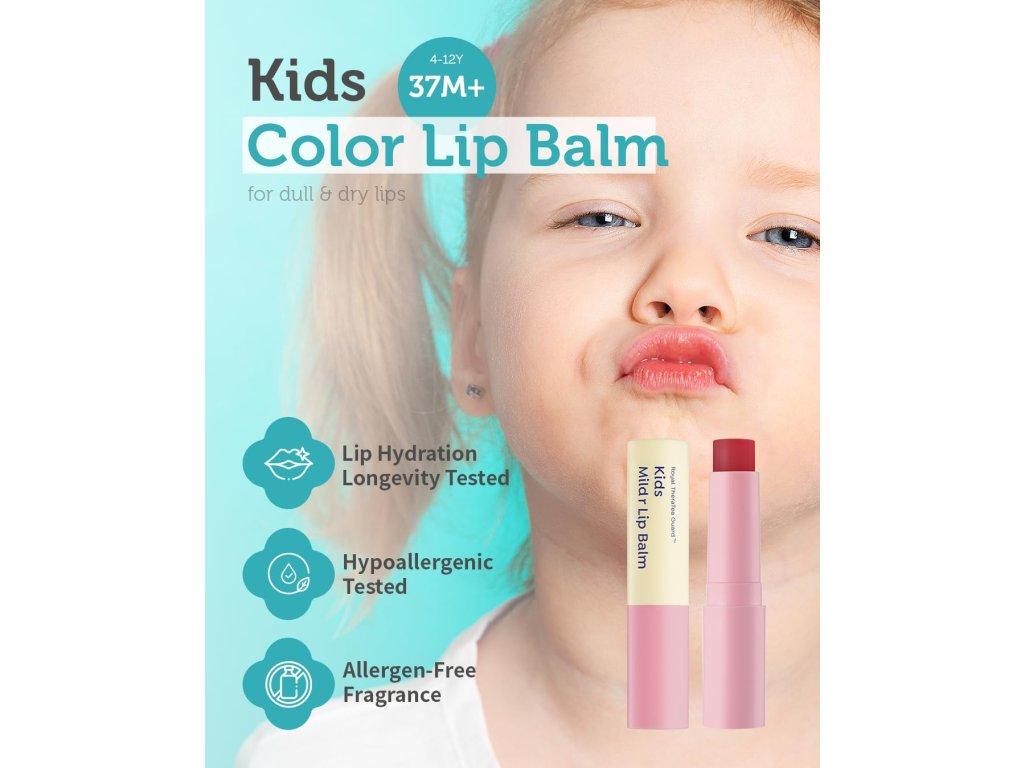 GOONGBE Kids farebný balzam na pery spája hydratáciu s jemným farebným efektom, ktorý si deti zamilujú.