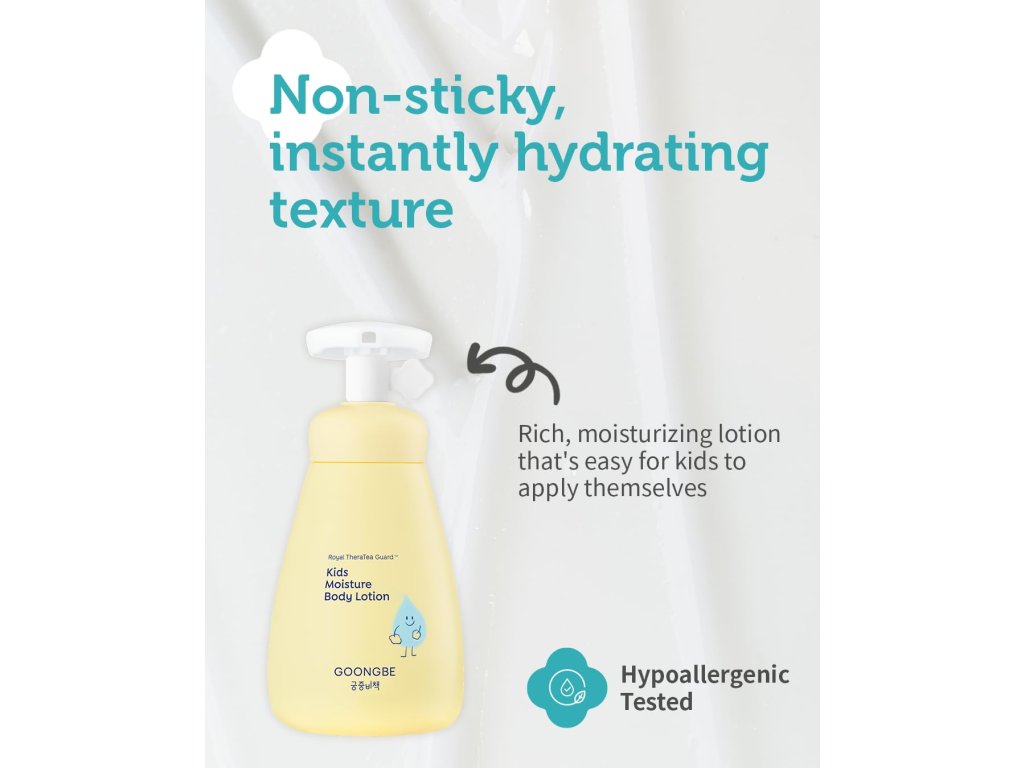 GOONGBE Kids Hydratačné telové mlieko hydratuje celé telo a udržiava pokožku jemnú a pružnú.