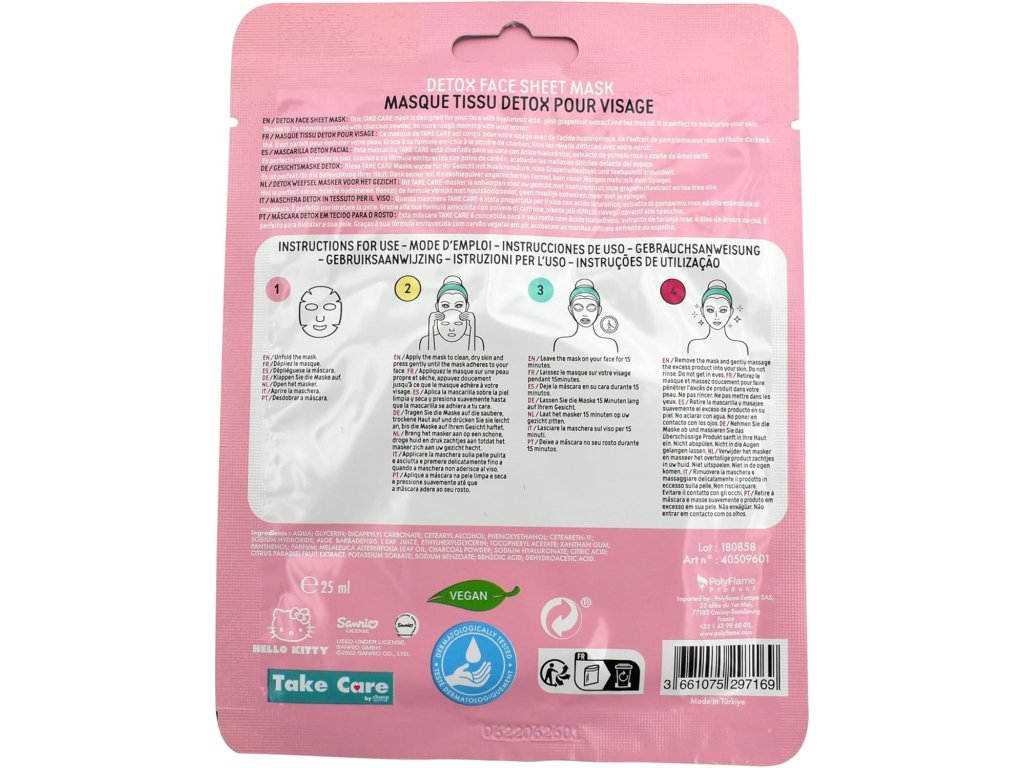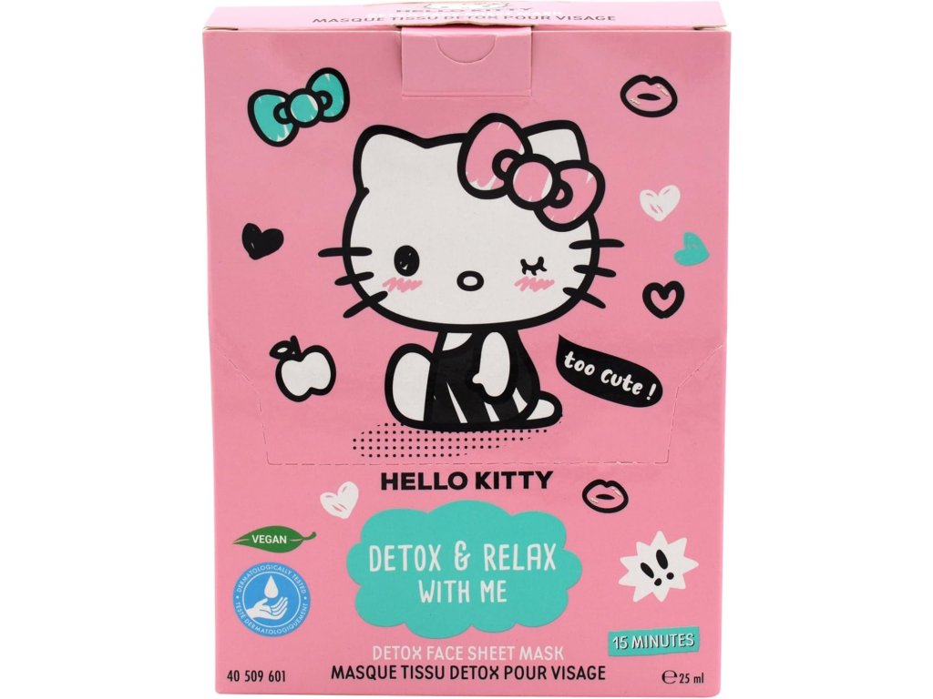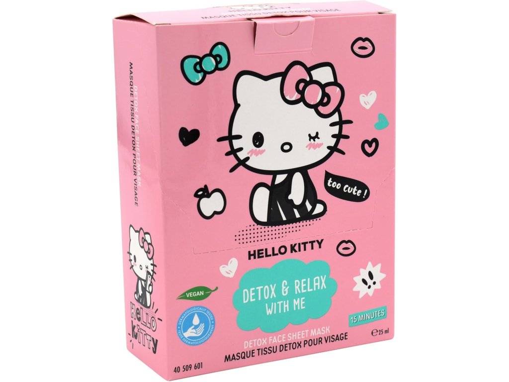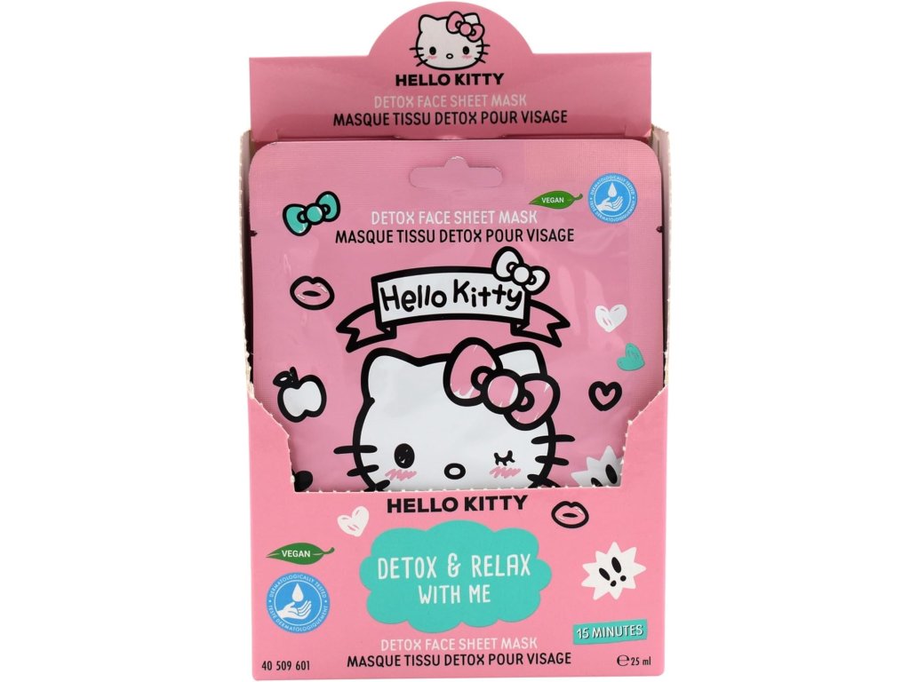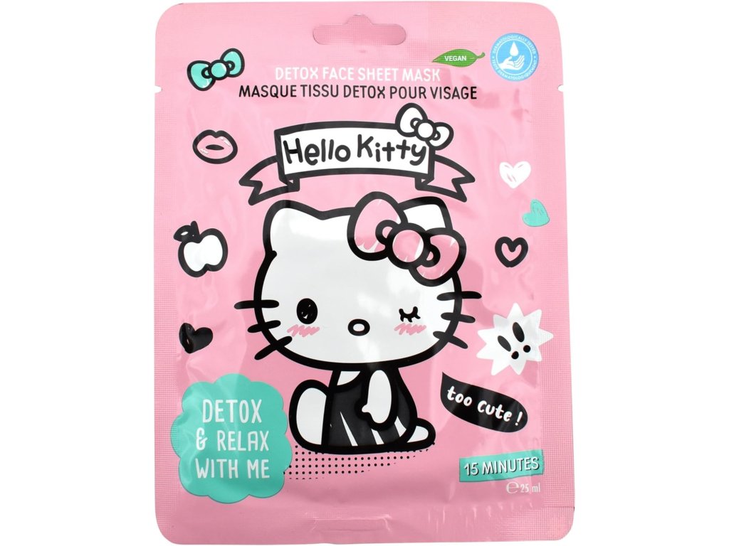 Rozkošná plátenná maska na tvár s motívom Hello Kitty, ktorá prináša osviežujúcu detoxikáciu a relax už za 15 minút.