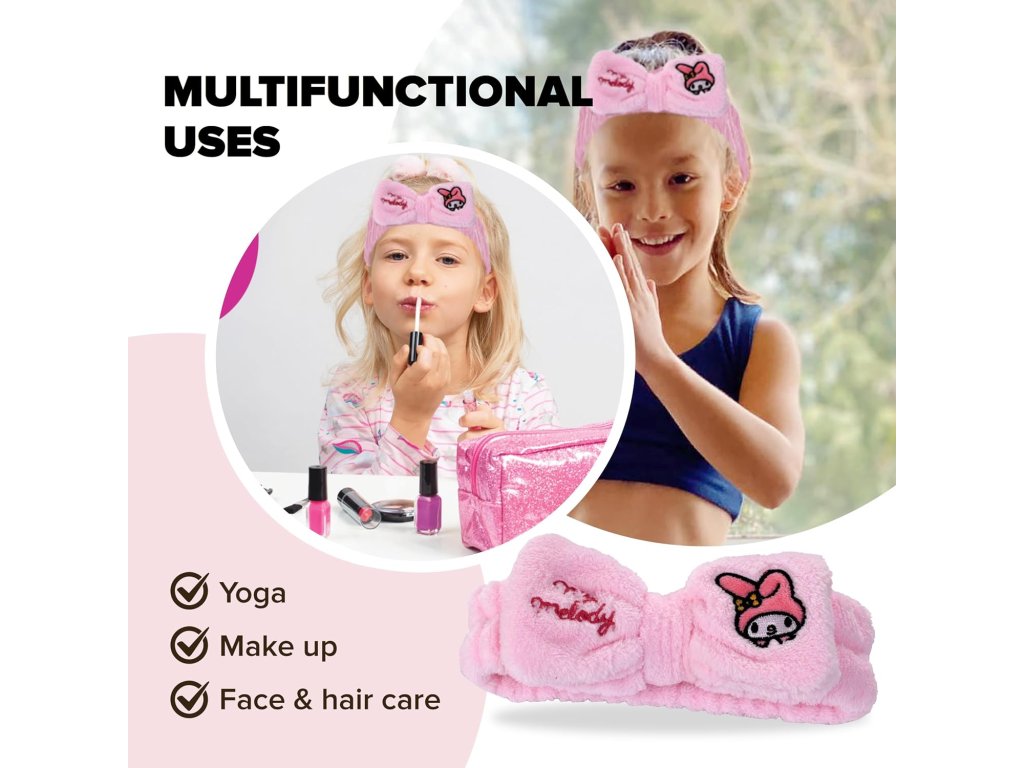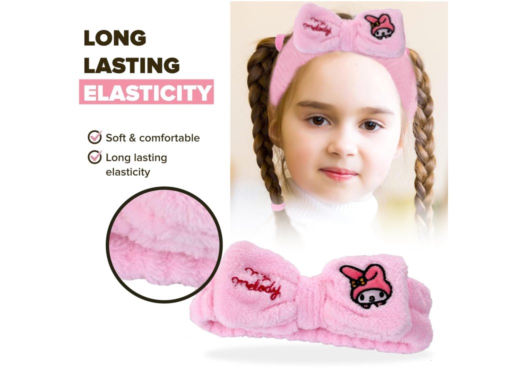 Táto ružová čelenka s mašličkou a roztomilou My Melody je ako stvorená na hravé chvíle! 🎀 Mäkučký plyšový materiál sa pohodlne prispôsobí hlavičke a udrží vlásky pekne na mieste – či už pri hre, kreslení alebo večernom odličovaní.
