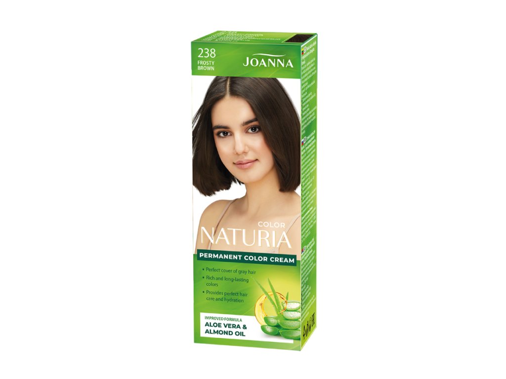 Farba Naturia Color v odtieni Mrazivá hnedá č. 238 je tmavá, neutrálna hnedá s mierne chladným leskom. Bude vyzerať krásne na všetkých typoch krásy.