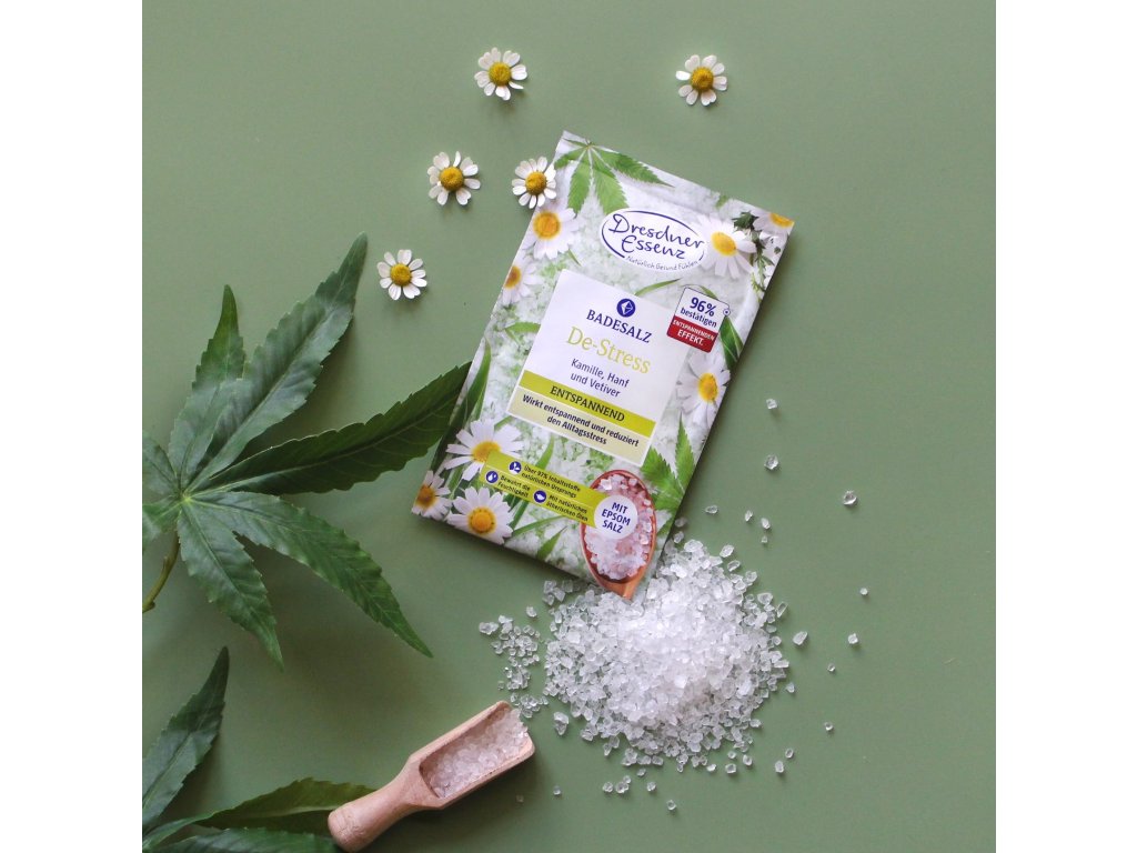 Upokojujúca soľ do kúpeľa s epsomskou soľou bohatou na horčík je obohatená o prírodný éterický vetiverový olej, konopný olej a extrakt z harmančeka. V spojení s teplou vodou pôsobí vyrovnávajúco a uvoľňujúco na telo aj dušu. Pomáha odbúrať každodenný stres a navodzuje pocit pokoja a pohody.