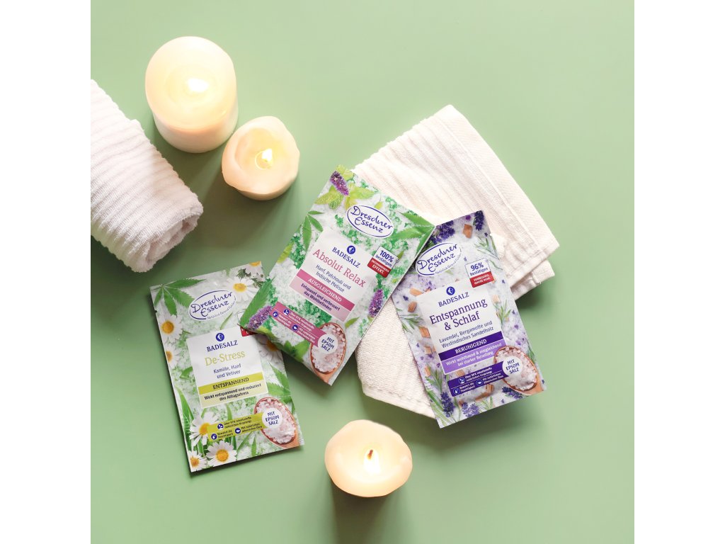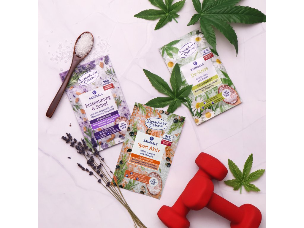 - **Epsomská soľ** s obsahom horčíka pomáha uvoľniť svaly a zmierniť napätie