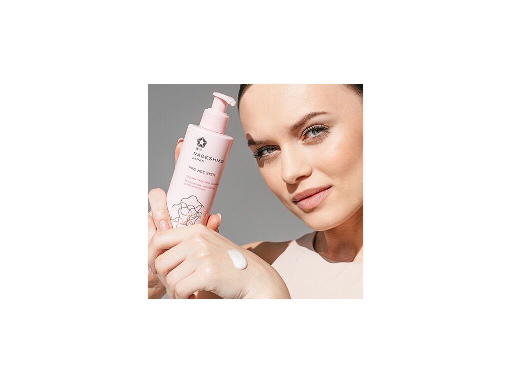 Japonský krémový čistiaci fluid Nadeshiko Pro-Age System jemne čistí pleť, odstraňuje make-up a zároveň hydratuje a posilňuje ochrannú bariéru pokožky. Je obohatený o olej tsubaki, ferment z hnedej ryže, kyselinu hyalurónovú a prebiotický komplex. Vhodný pre všetky typy pleti vrátane citlivej.