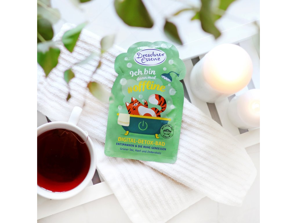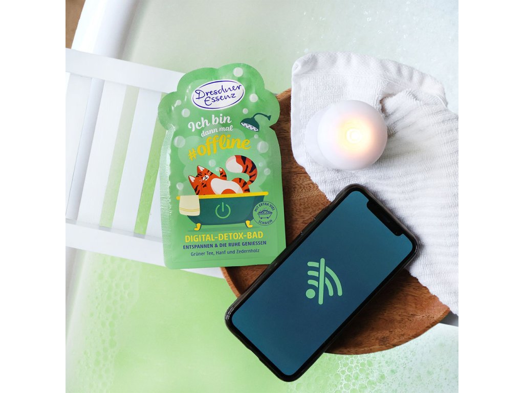 Perfektné riešenie, keď chcete na chvíľu stlačiť pauzu a vypnúť od sveta – naše digitálne detox kúpeľové penu „ICH BIN DANN MAL #OFFLINE“.