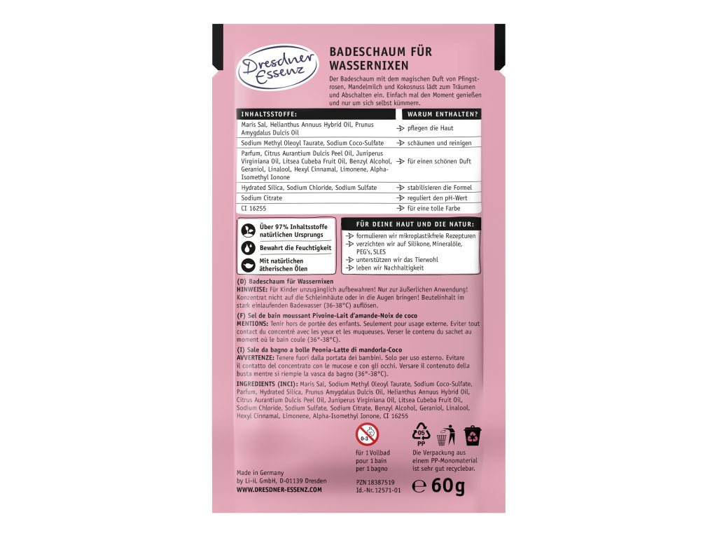 Zažite nezabudnuteľný, čarovný kúpeľ s našou penivou penou, naplnenou očarujúcimi vôňami 🌸 pivónie, 🥛 mandľového mlieka a 🥥 tropického kokosu. Vďaka špeciálnej receptúre vás naša soľ do kúpeľa prenesie do stavu blaženého relaxu a uvoľnenia, pomôže zabudnúť na starosti a sústrediť sa len na seba. Toto je váš čas oddychu, pokoja a úplného vypnutia! Keď sa ponoríte do teplej vody, dýchajte zhlboka a nechajte všetok stres dňa odplávať preč.