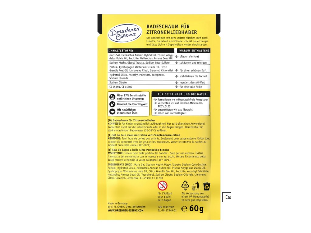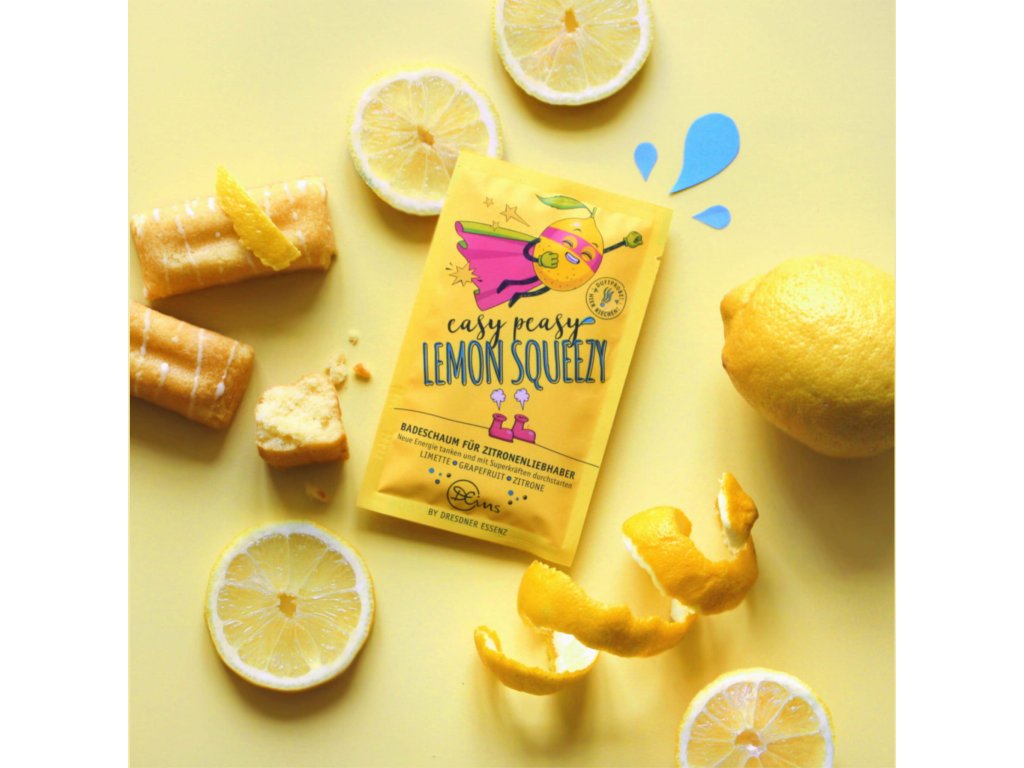 Jemne svieža a šťavnatá vôňa limetky, grapefruitu a citróna premení každý kúpeľ na skutočný rituál relaxu a oddychu. 🌿🍊 Vôňa citróna povzbudí vaše zmysly a naplní vás energiou, aby ste ľahšie zvládli všetky výzvy dňa. Doprajte si novú dávku vitality a pocíťte super sily s Easy Peasy Lemon Squeezy! ⚡💛