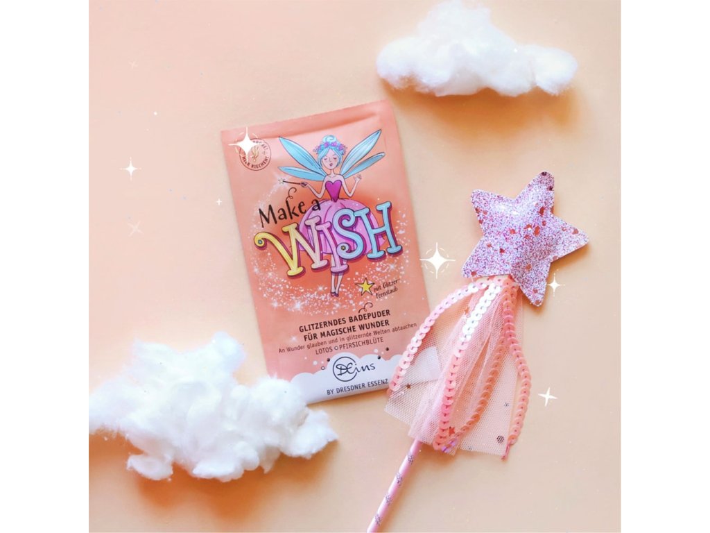 Objav kúzlo nášho kúpeľového púdru „MAKE A WISH“ a ponor sa do modrej vody plnej zázrakov! 🌊💫