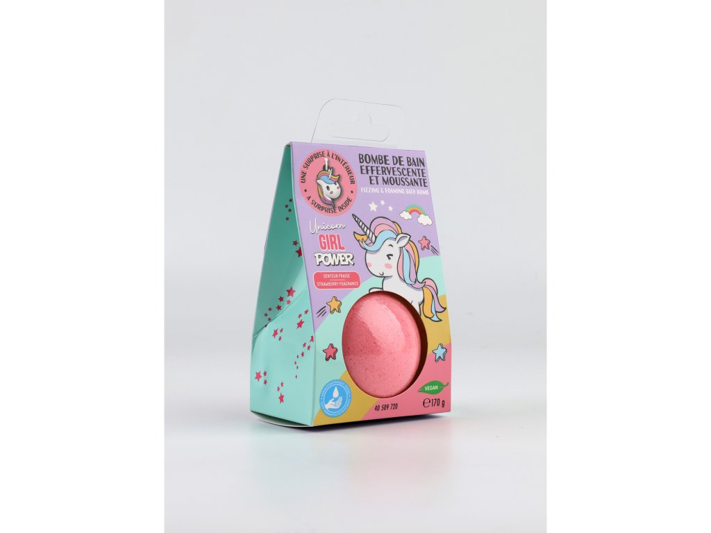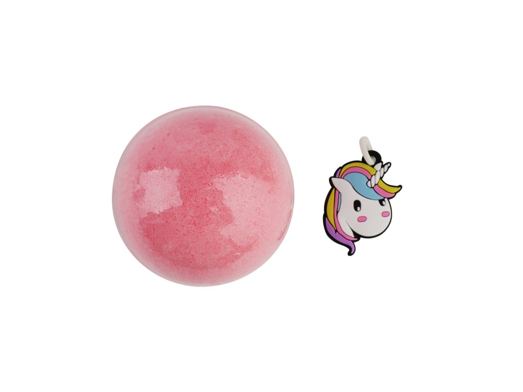 Šumivá guľa do kúpeľa premení tvoj kúpeľ na zázračné miesto. Nielenže rozvonia vodu sladkou jahodovou vôňou, ale navyše v sebe ukrýva aj prekvapenie – roztomilý prívesok s jednorožcom. 🌈